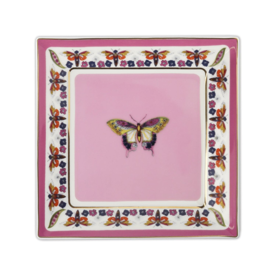 Descrição: Porta objeto quadrado em porcelana, ideal para organizar pequenos itens com charme e delicadeza. Com detalhe de borboleta ao centro e bordas decoradas, é uma peça que une funcionalidade e beleza, perfeita para complementar a decoração.