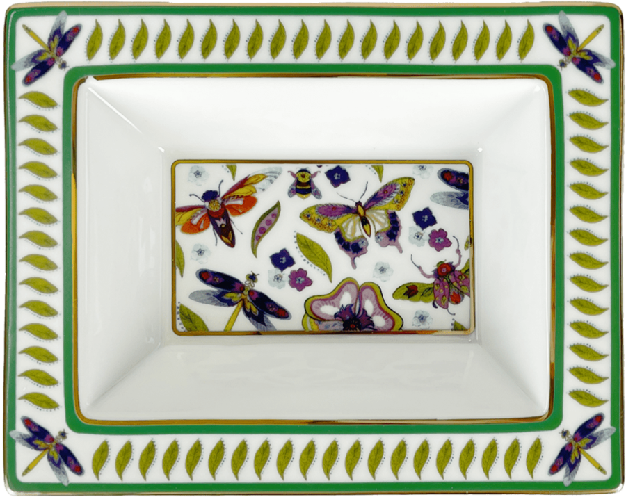 Descrição: Porta objeto em porcelana, com formato retangular e estampa delicada de borboletas e flores no interior. Uma peça charmosa que combina praticidade com sofisticação, ideal para organizar pequenos itens ou compor a decoração.