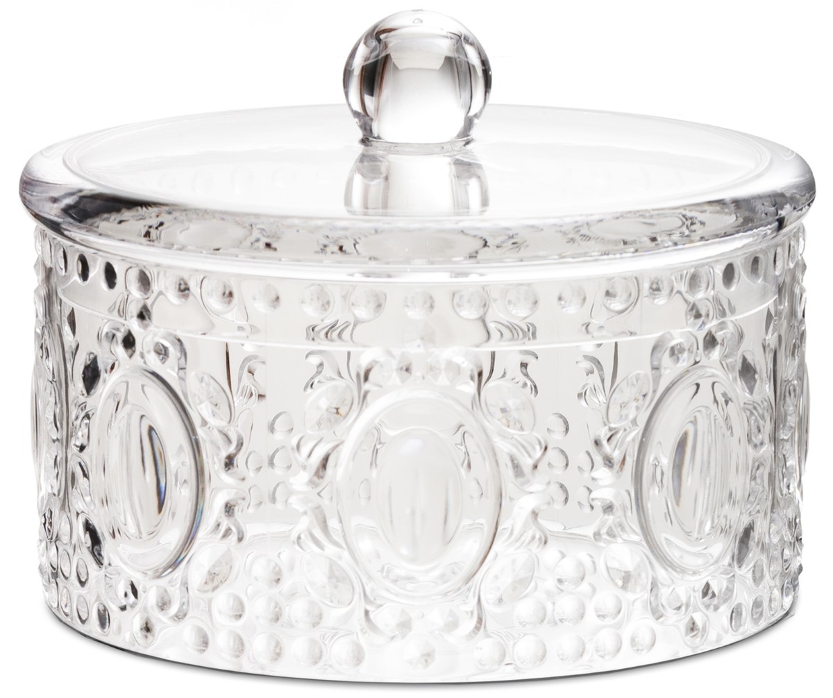 Descrição: Pote com tampa em acrílico transparente, com design inspirado no barroco, trazendo detalhes em relevo que conferem elegância e sofisticação à peça. Ideal para armazenar doces, biscoitos, açúcar ou pequenos objetos, unindo praticidade e charme na decoração.