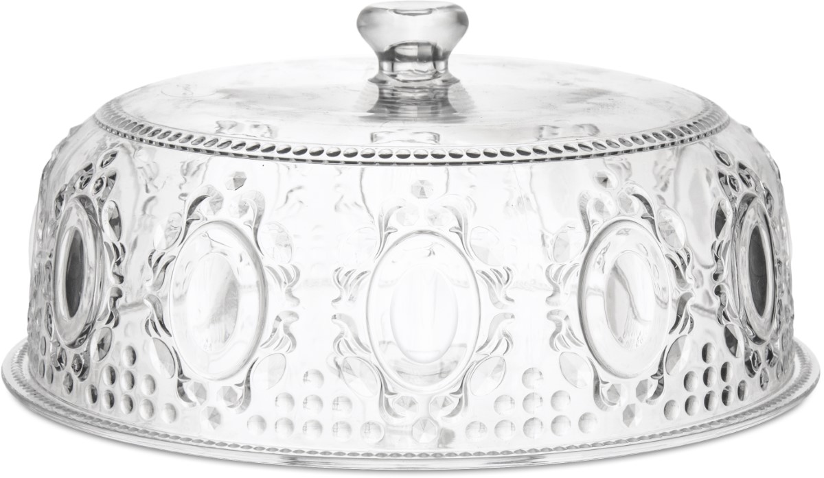 Descrição: Boleira em acrílico transparente, com design inspirado no barroco e detalhes em relevo que garantem elegância à mesa, ideal para servir bolos, tortas ou sobremesas, unindo praticidade e sofisticação.