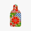Descrição: Tábua retangular média em melamina, decorada com fundo branco e estampa vibrante de tomates vermelhos, folhas verdes e elementos florais. O destaque central fica para a roda siciliana em tons de vermelho, laranja e amarelo, acompanhada de padrões geométricos azul e branco que completam o design alegre e colorido.