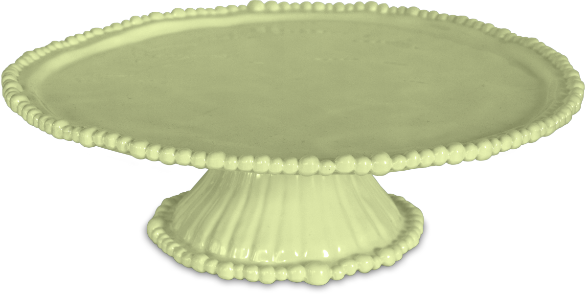 Descrição: Boleira em melamina na cor verde, com acabamento delicado em relevo na borda e base em formato trabalhado. Sofisticada e resistente, é ideal para servir bolos, tortas e sobremesas com charme e elegância.