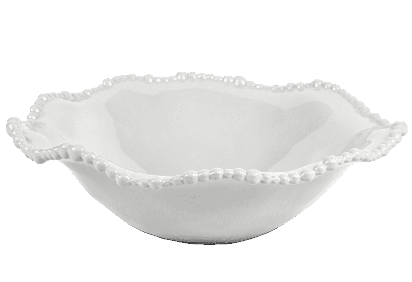 Descrição: Bowl médio para salada em melamina branca, com design elegante e borda ondulada em relevo de pérolas. Sendo perfeito para servir saladas, frutas ou acompanhamentos e compor mesas postas cheias de charme.