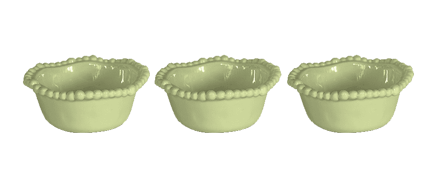 Descrição: Conjunto com 3 bowls pequenos em melamina verde, com design delicado e borda em relevo. Ideais para servir molhos, petiscos ou sobremesas, acrescentam praticidade e elegância à mesa posta.