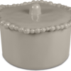 Descrição: Pote pequeno em melamina fendi com tampa, trazendo design clean e sofisticado. A borda em relevo adiciona charme e elegância à peça, que é ideal para armazenar alimentos ou ser usada como item decorativo, compondo mesas e ambientes com praticidade e estilo.