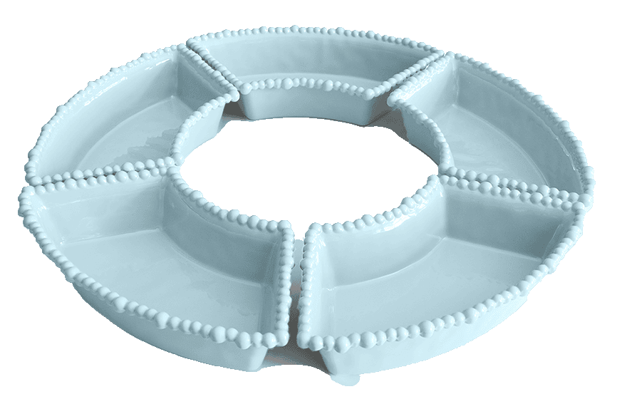 Descrição: Set com 5 bowls grandes em melamina azul, com design em borda de relevo e formato que permite encaixe perfeito em composição circular. Ideal para servir diferentes tipos de aperitivos, petiscos ou acompanhamentos, une funcionalidade e sofisticação, tornando a mesa posta mais prática e charmosa.