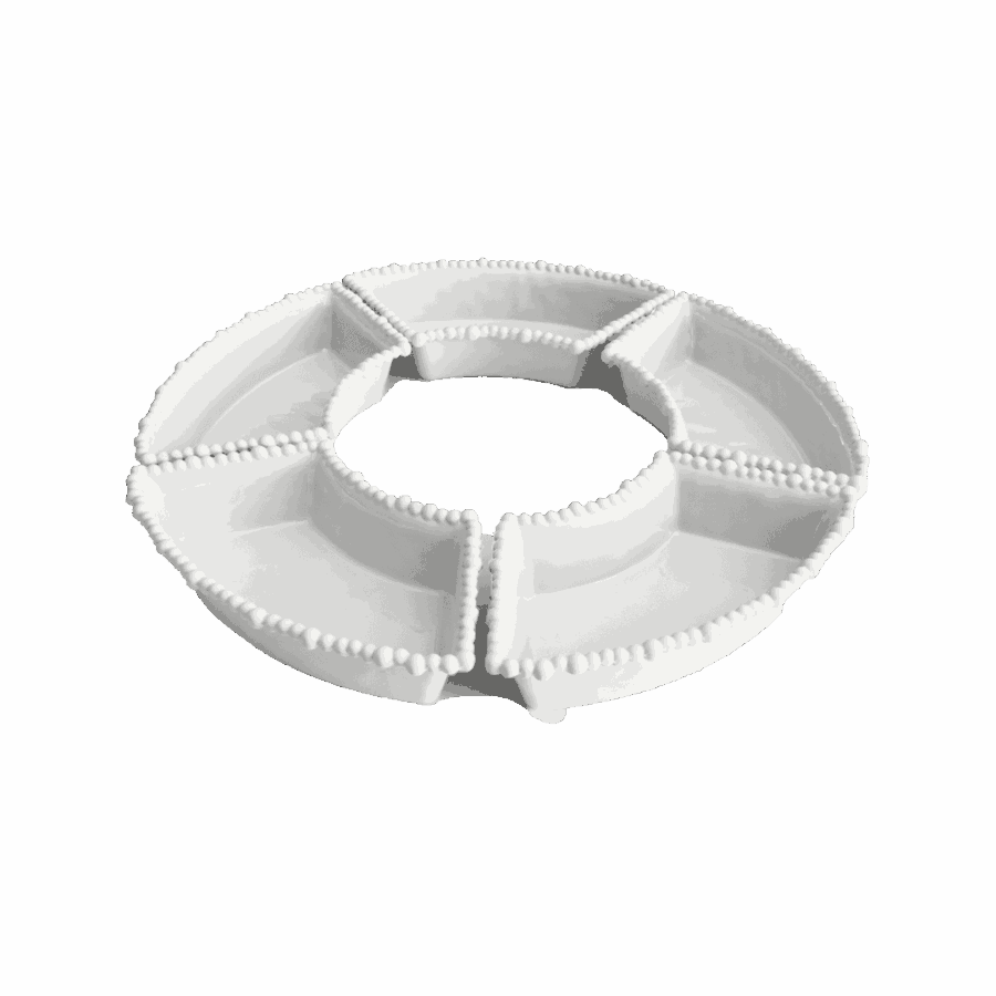 Descrição: Set com 5 bowls grandes em melamina branco, com design em borda de relevo e formato que permite encaixe perfeito em composição circular. Ideal para servir diferentes tipos de aperitivos, petiscos ou acompanhamentos, une funcionalidade e sofisticação, tornando a mesa posta mais prática e charmosa.
