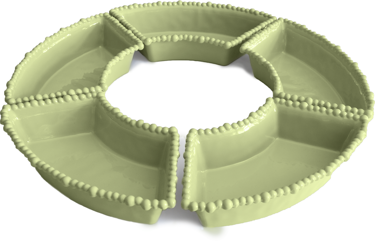 Descrição: Set com 5 bowls grandes em melamina verde, com design em borda de relevo e formato que permite encaixe perfeito em composição circular. Ideal para servir diferentes tipos de aperitivos, petiscos ou acompanhamentos, une funcionalidade e sofisticação, tornando a mesa posta mais prática e charmosa.