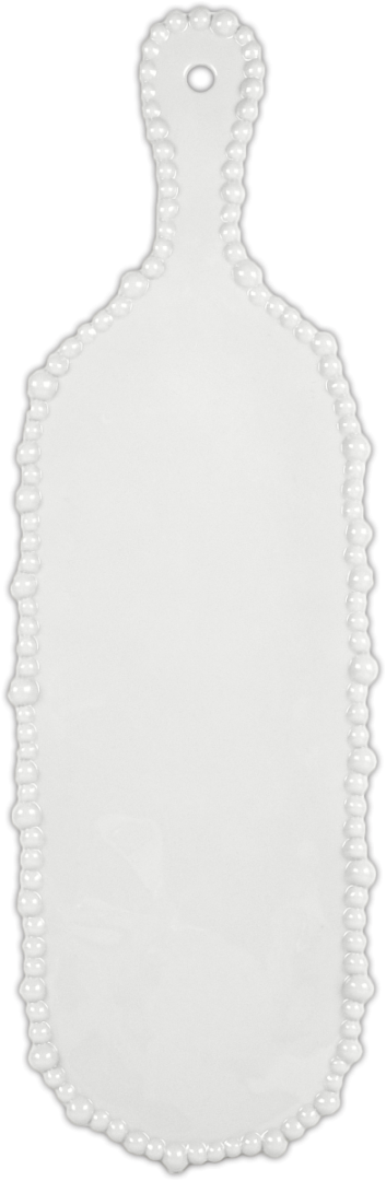 Descrição: Tábua média em melamina branca, com formato retangular ovalado, alça para manuseio e borda em relevo que acrescenta delicadeza ao design. Ideal para servir frios, queijos, pães ou petiscos, combina funcionalidade e sofisticação, valorizando a mesa posta em qualquer ocasião.