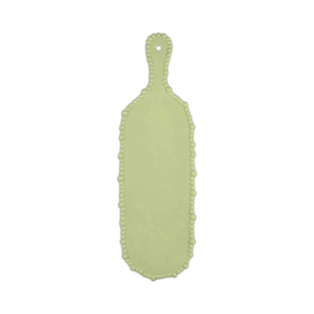 Descrição: Tábua média em melamina verde, com formato retangular ovalado, alça para manuseio e borda em relevo que acrescenta delicadeza ao design. Ideal para servir frios, queijos, pães ou petiscos, combina funcionalidade e sofisticação, valorizando a mesa posta em qualquer ocasião.