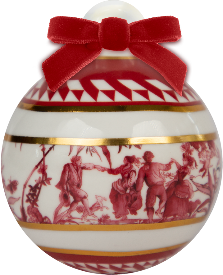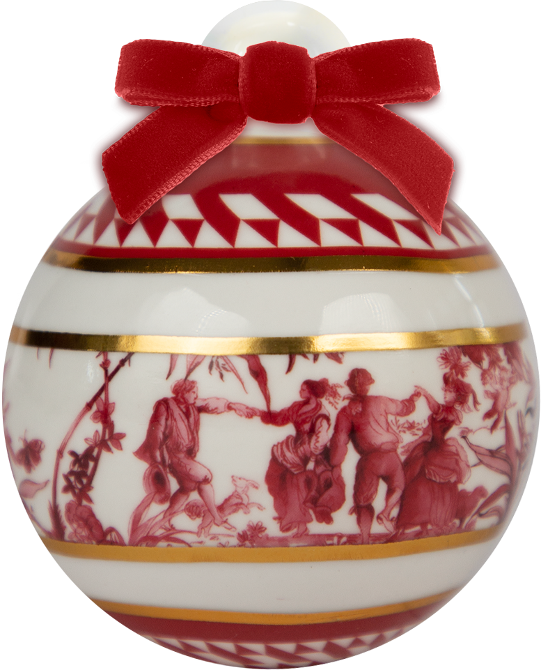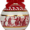 Descrição: Bola de Natal em porcelana com estampa artística em vermelho e branco, retratando cena clássica. Detalhes em friso dourado realçam o design e acrescentam sofisticação, enquanto o laço em veludo vermelho completa a peça com charme festivo. Um ornamento requintado para decorar a árvore e compor ambientes natalinos elegantes.