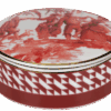 Descrição: Porta joias em porcelana, com tampa estampada em vermelho artístico e base com padrão geométrico moderno na mesma cor. O acabamento em dourado na borda acrescenta requinte e sofisticação, transformando a peça em um item elegante e versátil. Ideal para guardar pequenos objetos ou compor a decoração com charme e estilo.