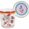 Descrição: Mini copo em porcelana com estampa de morangos e flores em tons vibrantes, realçada por detalhes em vermelho e dourado na borda. Acompanha pires com design delicado em rosa e azul, trazendo flor estilizada central e acabamento em friso dourado. Uma peça charmosa e sofisticada, perfeita para compor mesas postas e valorizar momentos especiais com elegância.