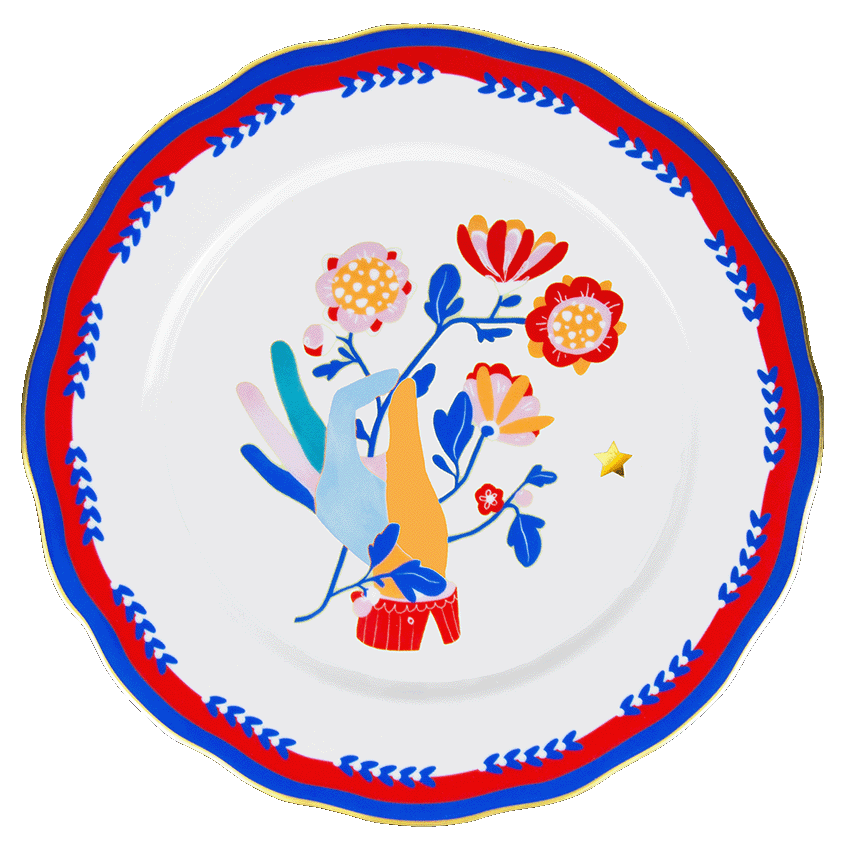 MAMMA MIA Prato raso mão em porcelana
