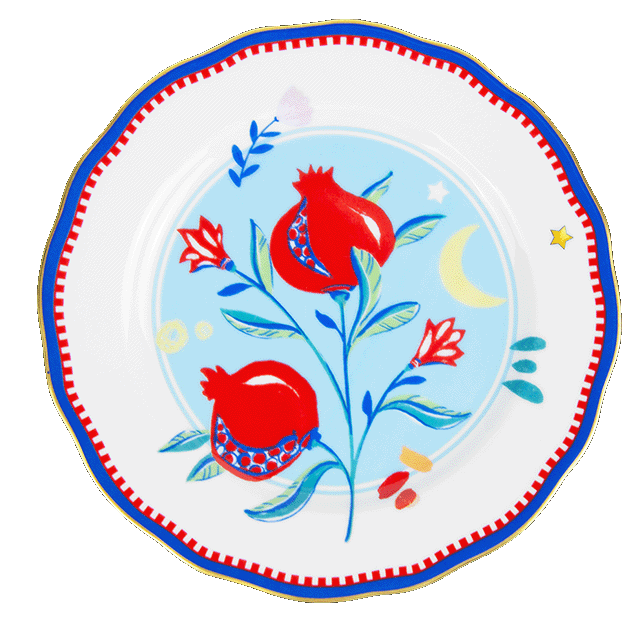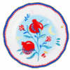Descrição: Prato de sobremesa em porcelana, com estampa vibrante de romãs em vermelho intenso e detalhes florais que simbolizam prosperidade e alegria. A borda azul com acabamento em friso dourado e delicados pontos vermelhos valoriza a peça, tornando-a sofisticada e única. Ideal para servir com elegância ou compor uma mesa posta cheia de charme e personalidade.