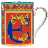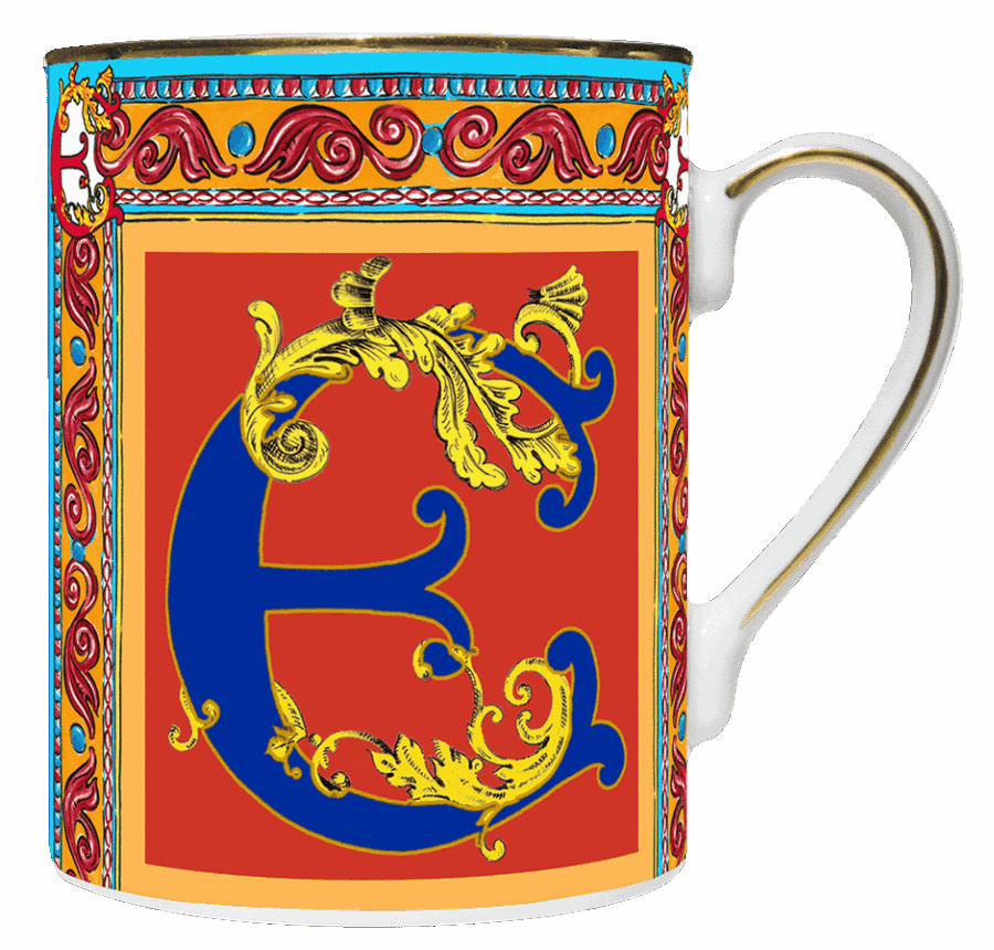 Descrição: Caneca em porcelana com design artístico, trazendo a letra E em destaque em composição vibrante com ornamentos dourados sobre fundo colorido. O acabamento em friso dourado na borda e na alça confere sofisticação, tornando a peça perfeita para apreciar café, chá ou como presente elegante e personalizado.