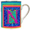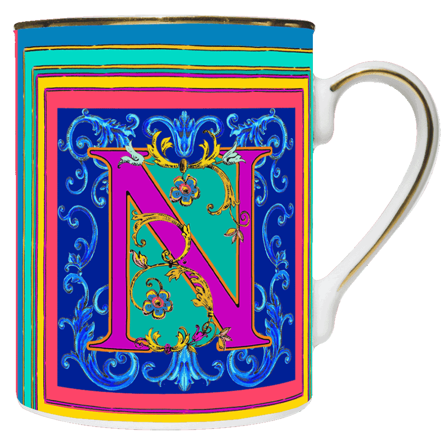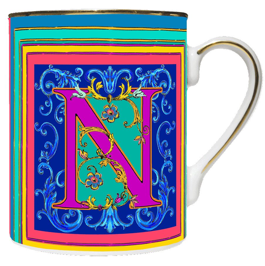 Descrição: Caneca em porcelana com a letra N em destaque, ricamente ornamentada em cores vibrantes que transmitem sofisticação e personalidade. O acabamento em friso dourado na borda e na alça garante elegância, tornando-a perfeita para apreciar suas bebidas favoritas ou como presente exclusivo e refinado.