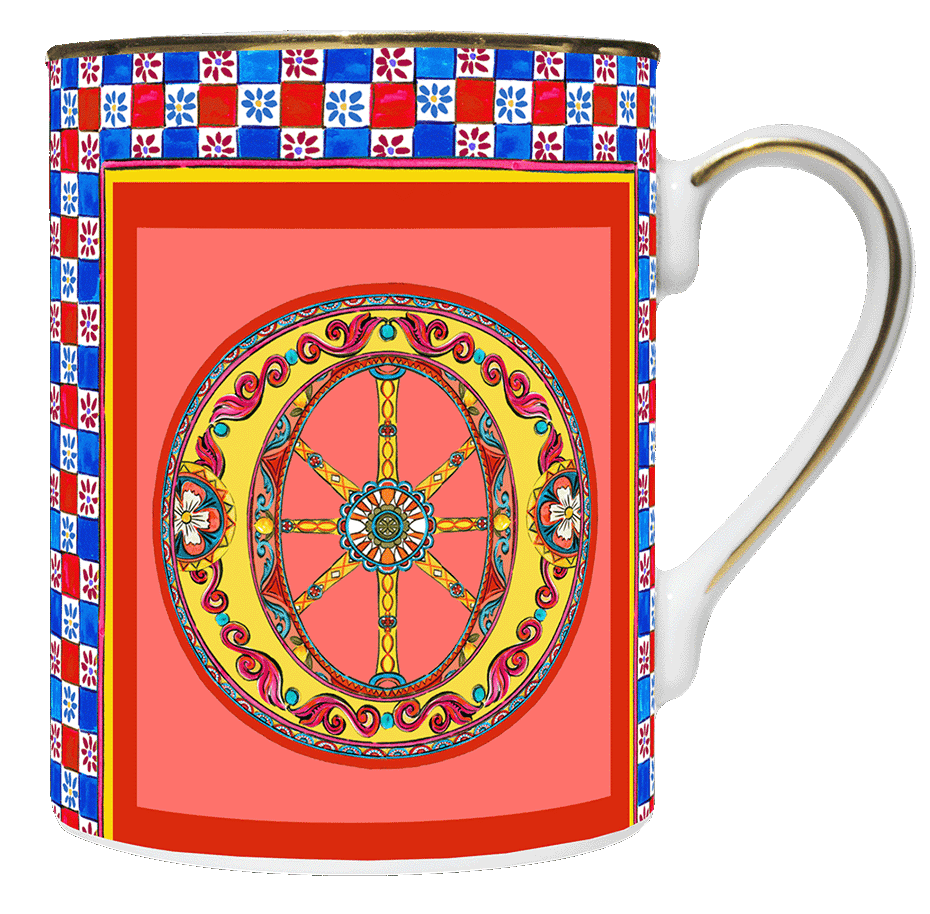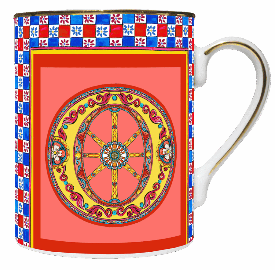 Descrição: Caneca em porcelana com design artístico e a letra O em destaque, trabalhada em ornamentos detalhados e cores vibrantes que transmitem personalidade e estilo. O acabamento em friso dourado na borda e na alça adiciona sofisticação, tornando-a ideal para degustar suas bebidas favoritas ou como presente elegante e personalizado.