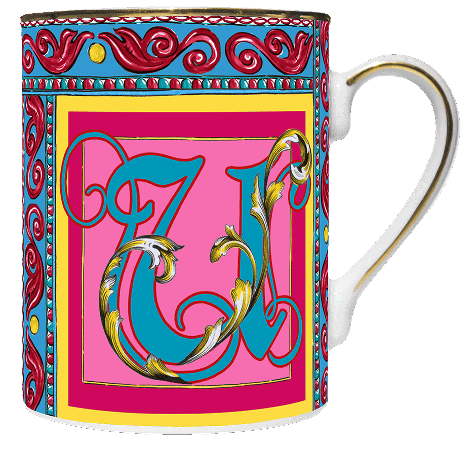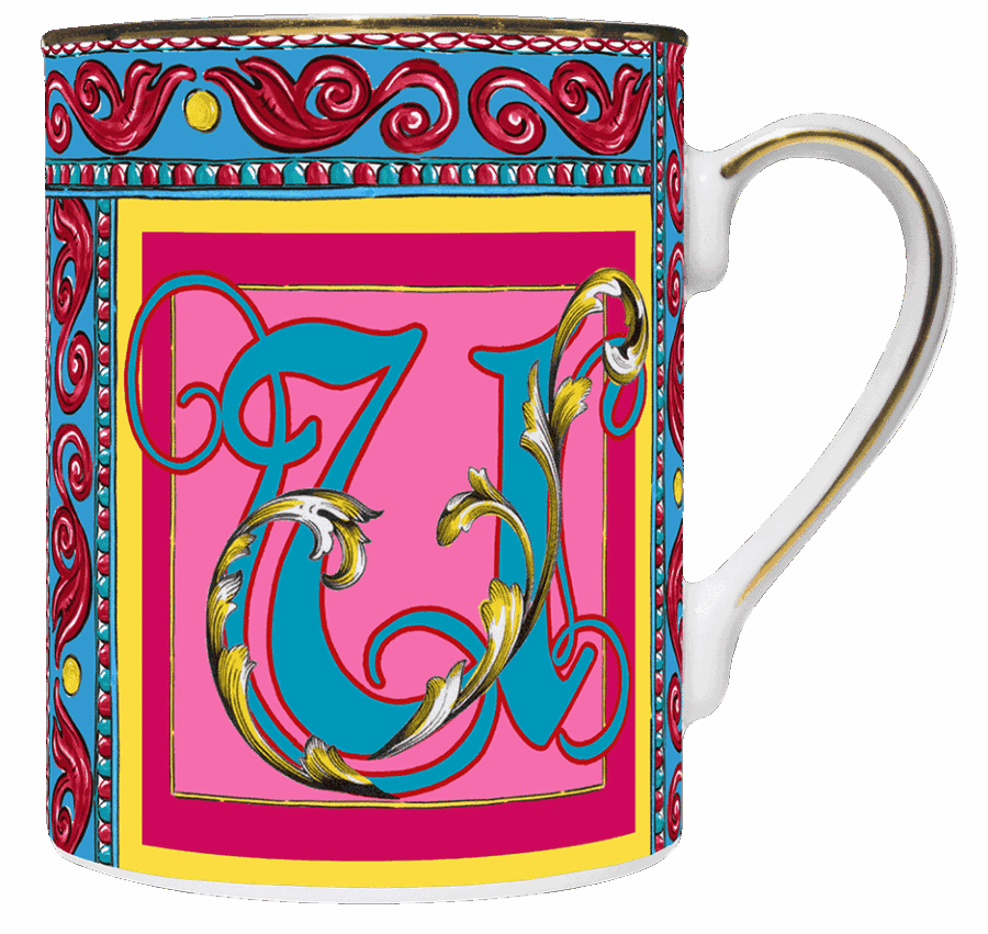 Descrição: Caneca em porcelana com a letra U em destaque, trabalhada em arabescos dourados e cores vibrantes que transmitem elegância e estilo. O acabamento em friso dourado na borda e na alça acrescenta sofisticação, tornando-a perfeita para degustar bebidas quentes ou como presente personalizado e refinado.
