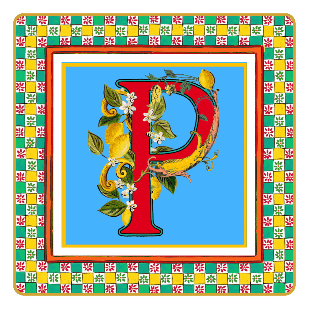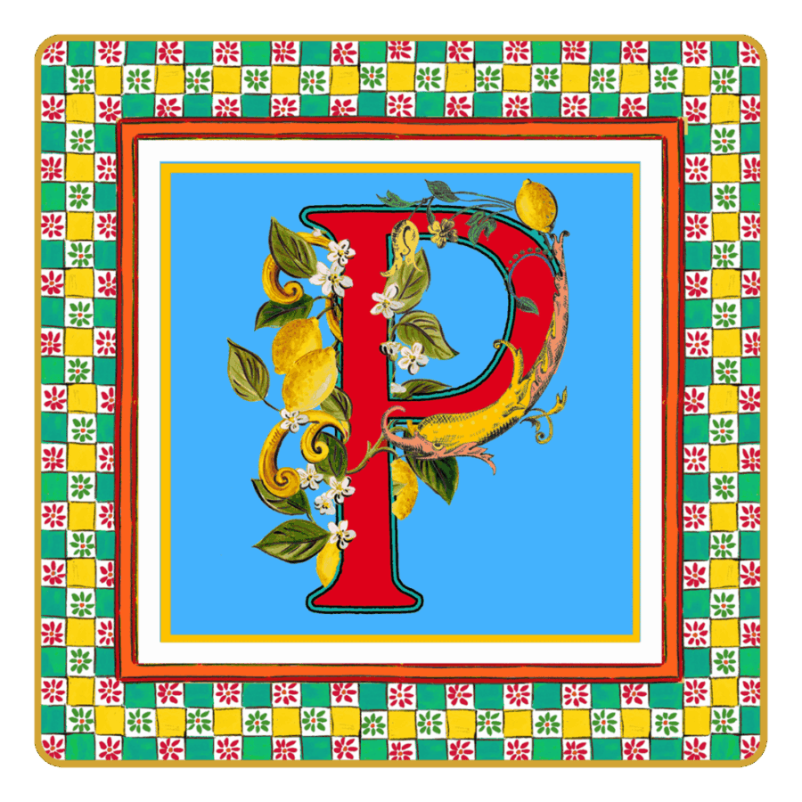 Descrição: Porta objetos em porcelana, com a letra P em vermelho sobre fundo azul, adornada com limões e folhagens. A borda xadrez colorida completa o design. Peça prática e elegante para organizar pequenos itens ou decorar com estilo.