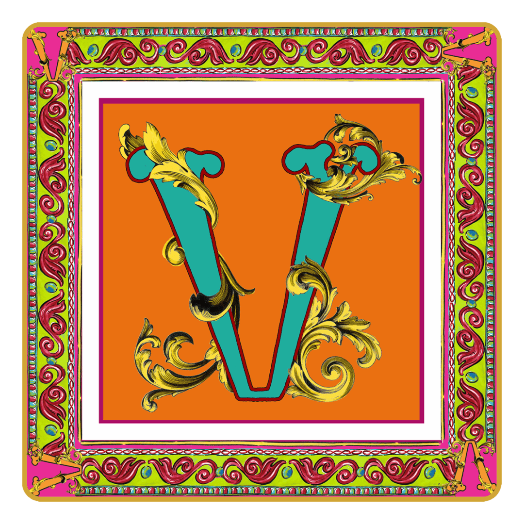 Descrição: Porta objetos em porcelana, com a letra V em azul ornamentado com dourado sobre fundo laranja. A borda em tons de verde, rosa e dourado acrescenta sofisticação. Peça prática e charmosa para organizar pequenos itens ou decorar com elegância.