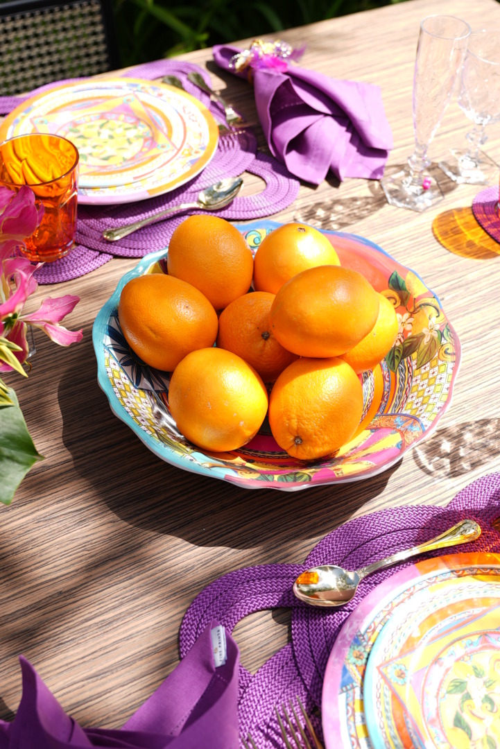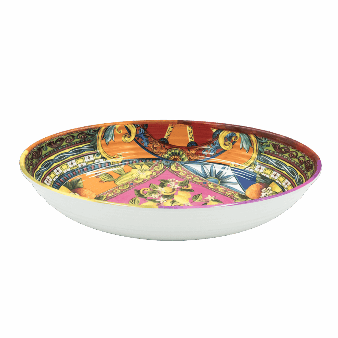Descrição: Saladeira oval em melamina com estampa vibrante que mistura frutas, flores e arabescos em cores intensas. Sofisticada e prática, é perfeita para servir saladas ou frutas, levando mais cor e estilo à mesa.