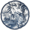 Descrição: Prato raso em porcelana com estampa clássica em azul e branco no estilo toile de jouy, retratando cenas artísticas ricas em detalhes. Uma peça sofisticada que transforma a mesa posta, unindo tradição, elegância e beleza atemporal.