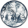 Descrição: Sousplat em porcelana com estampa clássica em azul e branco retratando cenas artísticas cheias de detalhes. Uma peça sofisticada que valoriza a mesa posta, trazendo elegância e charme atemporal às refeições.