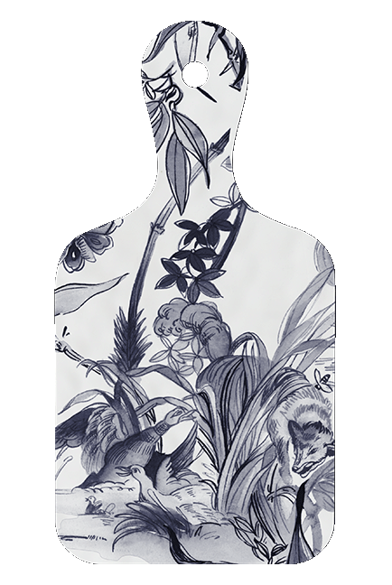 Descrição: Tábua retangular pequena em melamina com estampa clássica em azul e branco. Charmosa e funcional, é ideal para servir queijos, frios, petiscos ou até como peça decorativa, trazendo elegância atemporal à mesa.