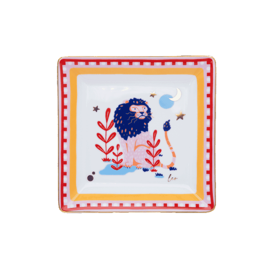 ZODIACO Porta objeto quadrado porcelana 15x15cm Leão